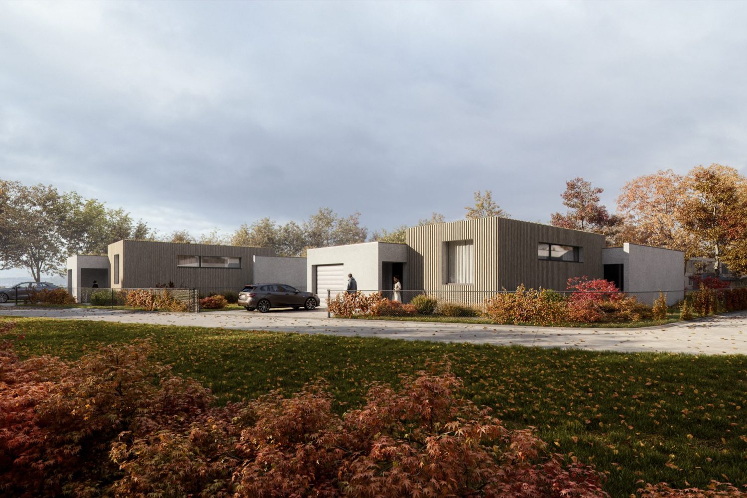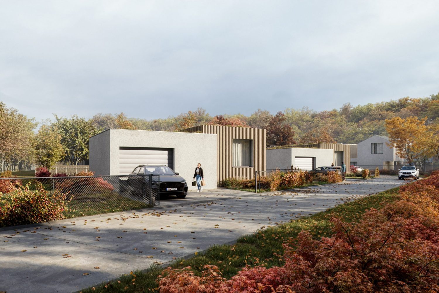 Ku každému bungalovu patria dve vonkajšie parkovacie miesta v rámci pozemku. Bungalov je možné postaviť vo variante s garážou, čo prinesie 3. parkovacie miesto. Základné terénne úpravy, oplotenie pozemkov a chodníky sú taktiež zahrnuté v cene nehnuteľnosti.Lokalita a bezpečnosť: