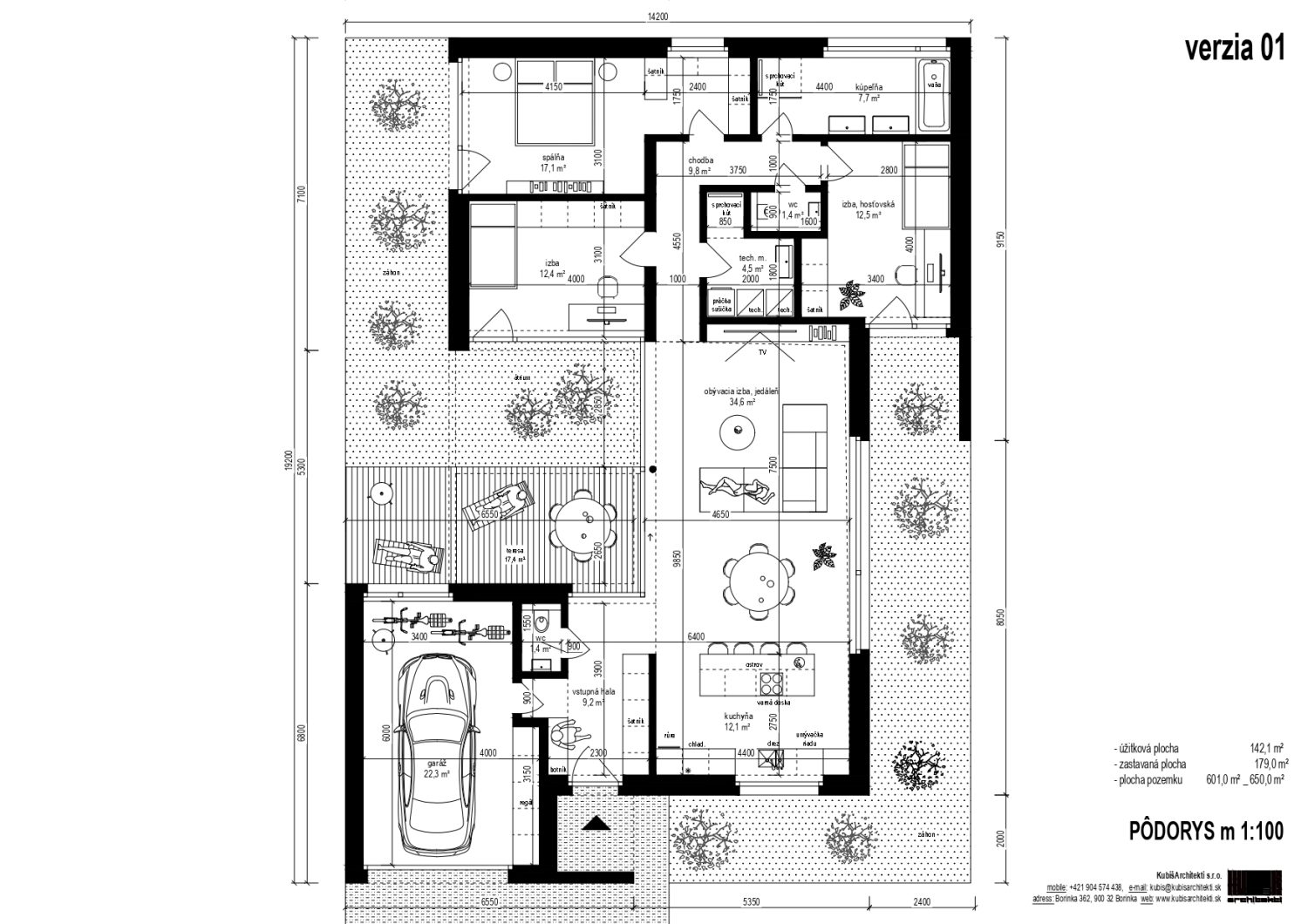 Variant 1: 4 izby + garáž + parkovisko na pozemku